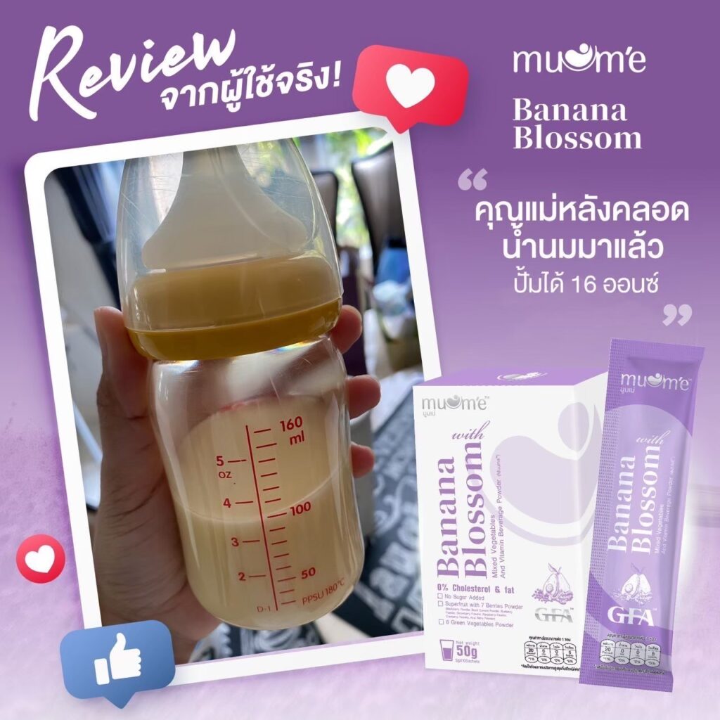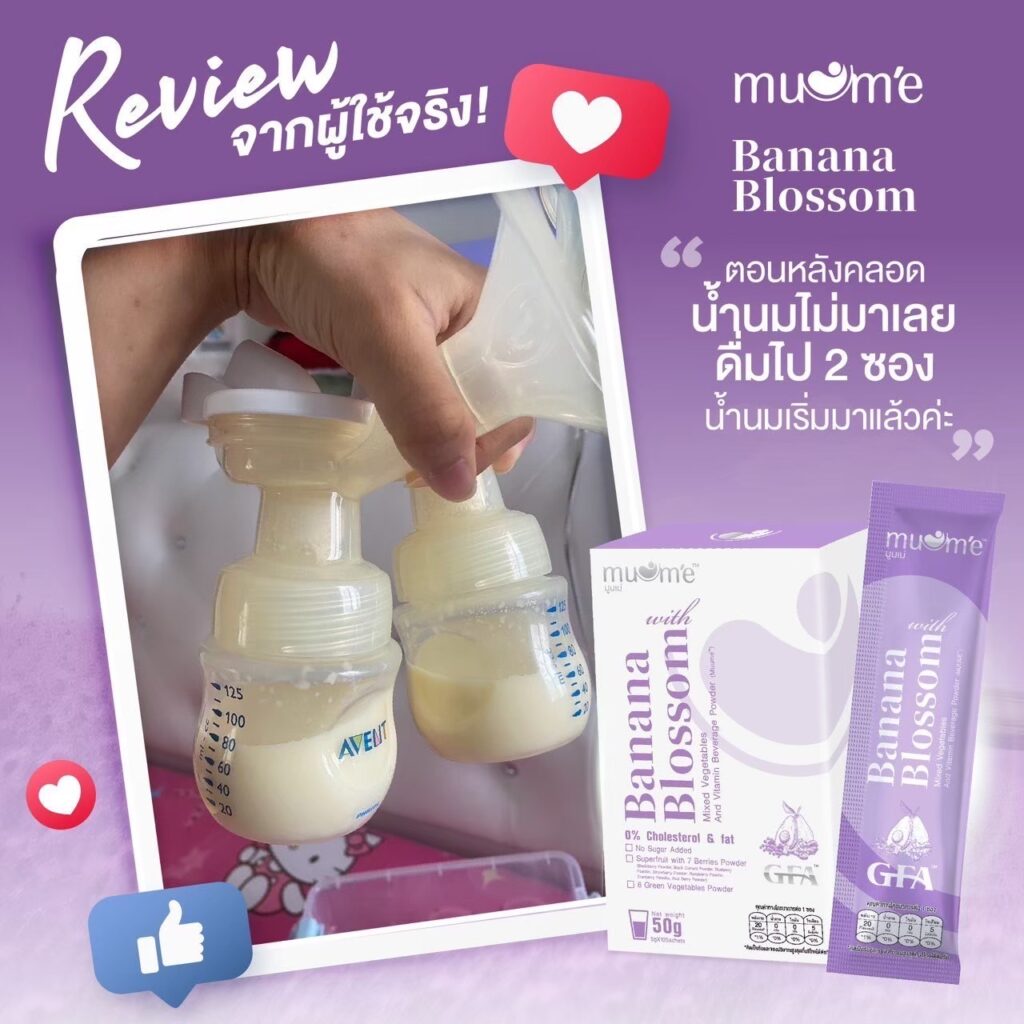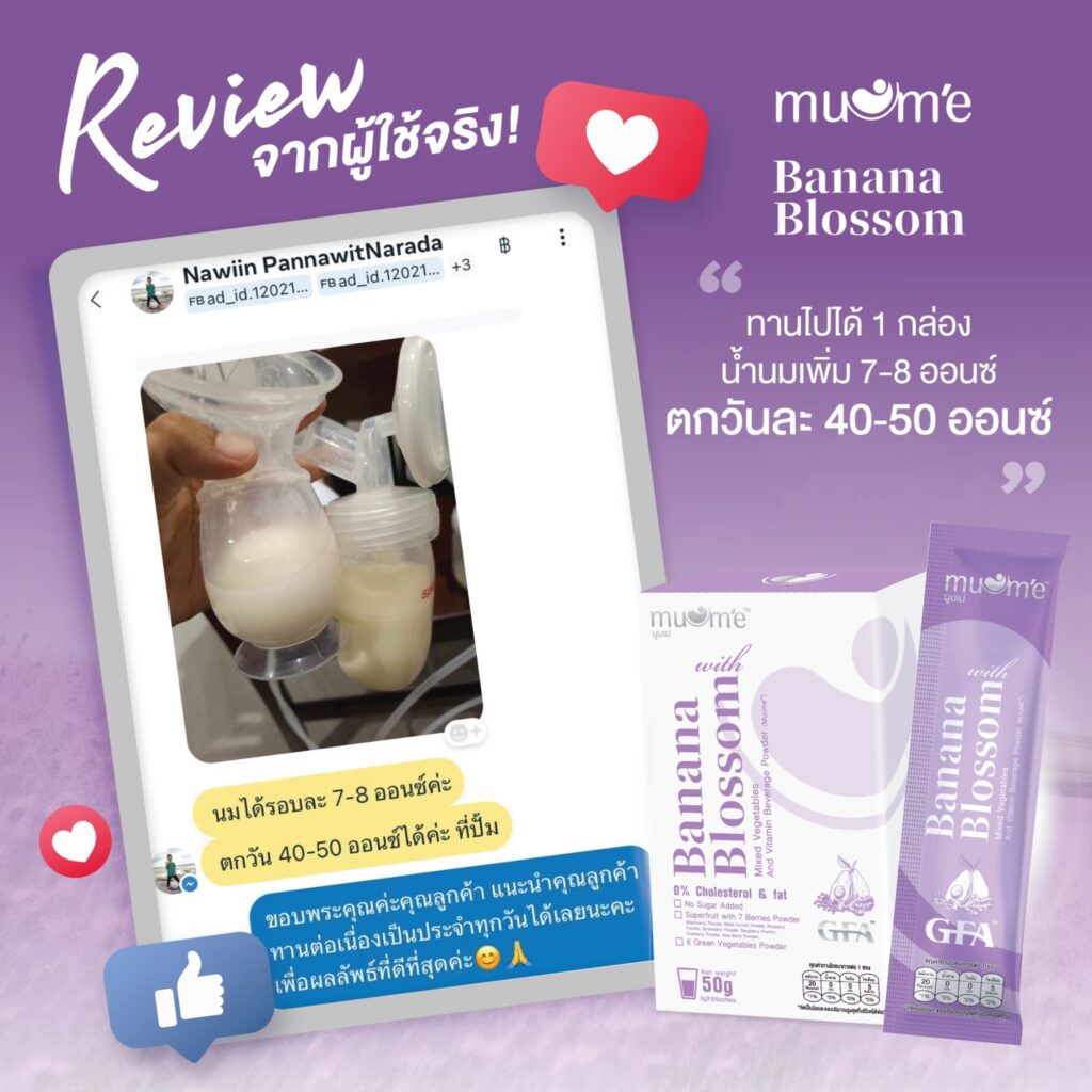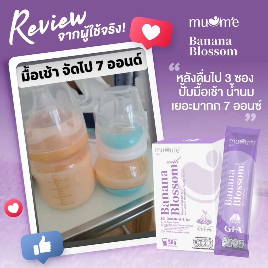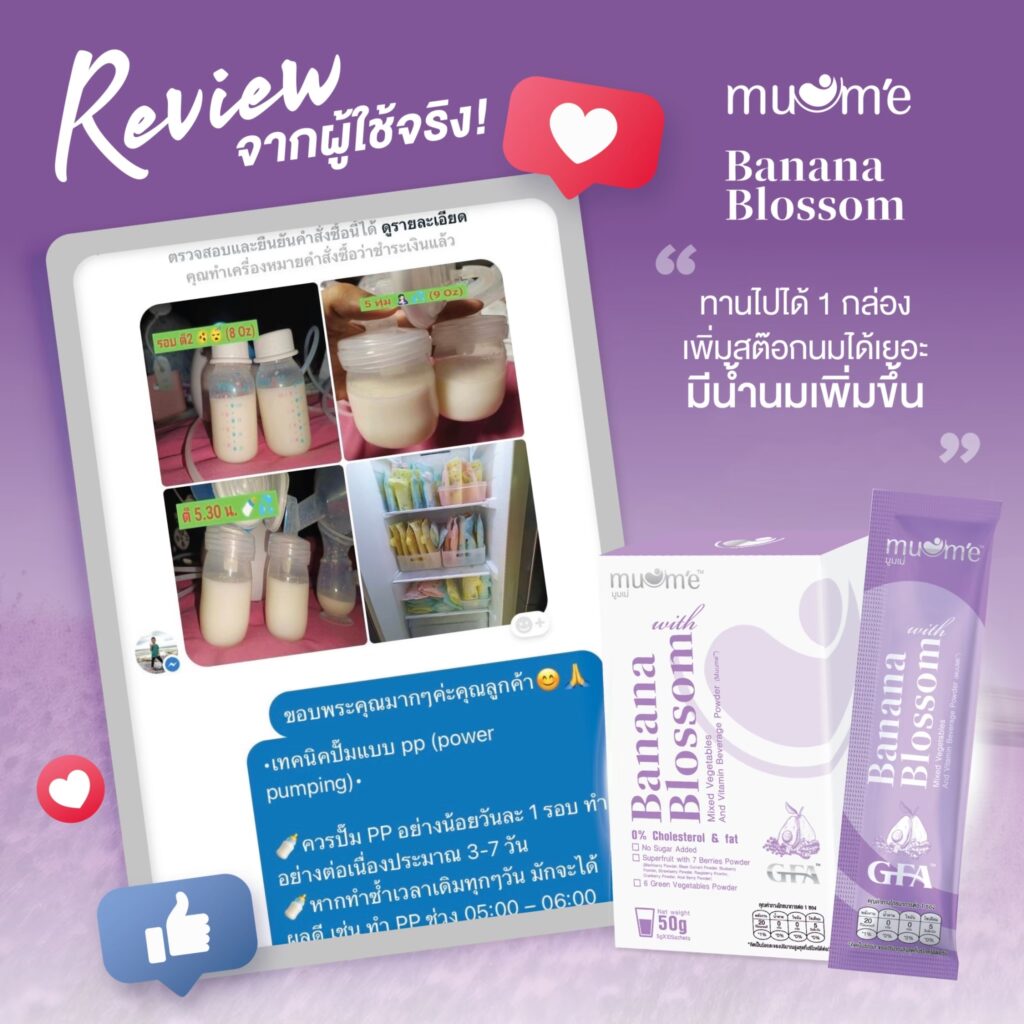 Exsample : คุณนามสมมุต ทดลองใช้มูเม่ บานาน่า บลอสซัม 1 เดือน เห็นผลชัดขึ้นมากจากช่วงหลังคลอดใหม่